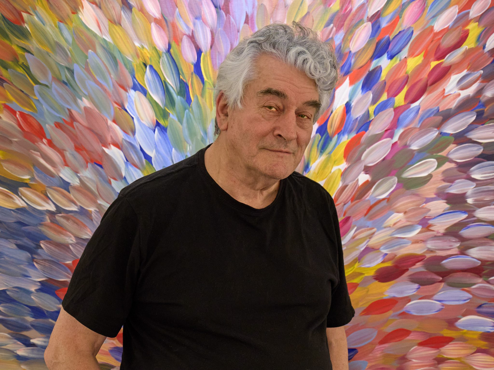 After seeing the exhibition, we headed back to Peters place with some other photographer friends. After a great meal with a few red wines (not too many) we retired to the loungeroom. It was riveting listening to all Peter’s different tales of his many years in the industry and the legends he had met. As Peter was speaking, I saw the aboriginal painting behind him and really wanted to get a photo of Peter with that explosion of colour in the background. It seemed like such a contrast to me – Peter with his love for black and white photography, overwhelmed by a colour background. Fortunately, I had my trusty Lumix S5 camera with me, so I asked Peter to stand in front of the painting and I made a memory of the evening. It’s just a fun happy snap of Peter that will always remind me of that night and Peter’s colourful stories. When you feel the inspiration to take a photo, stop and follow the idea – seize the moment. They don’t all work out as masterpieces, but they often capture magical memories.